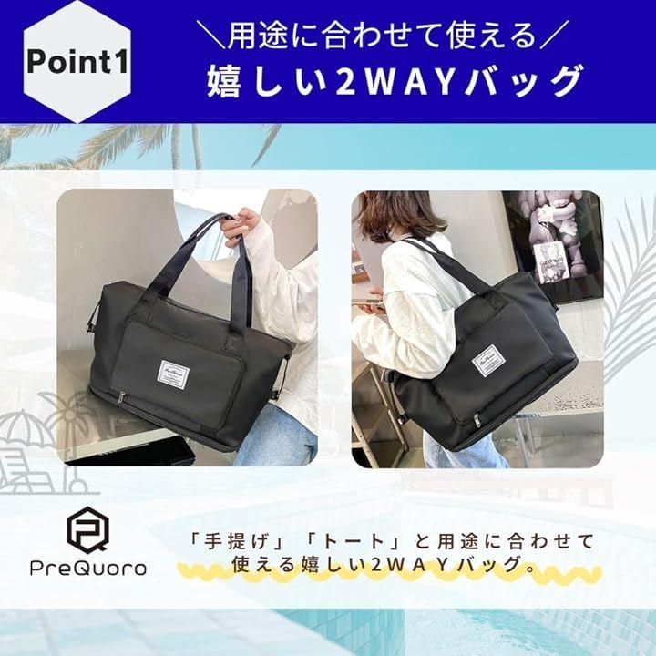 Travel bag, Boston bag, large capacity, lightweight, waterproof, foldable, 2-way tote, carry-on compatible, compact