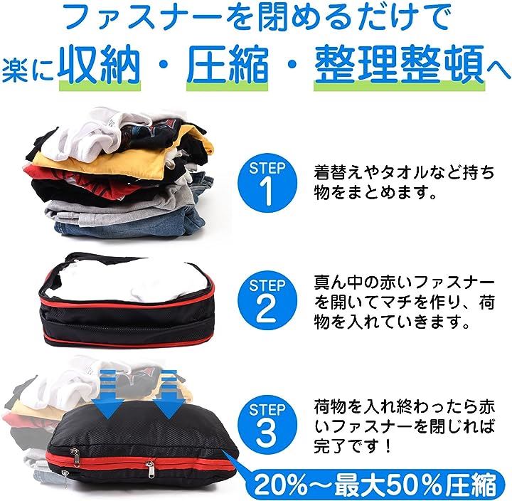 毎回の荷造り、パッキングでの手間を省き、荷物が多くて入り切れない・かさばる衣類を圧縮し、荷物を小さくコンパクトにし、収納スペースを得ることにより、お土産や違う荷物、シューズやサンダルなども入れることも可能です。