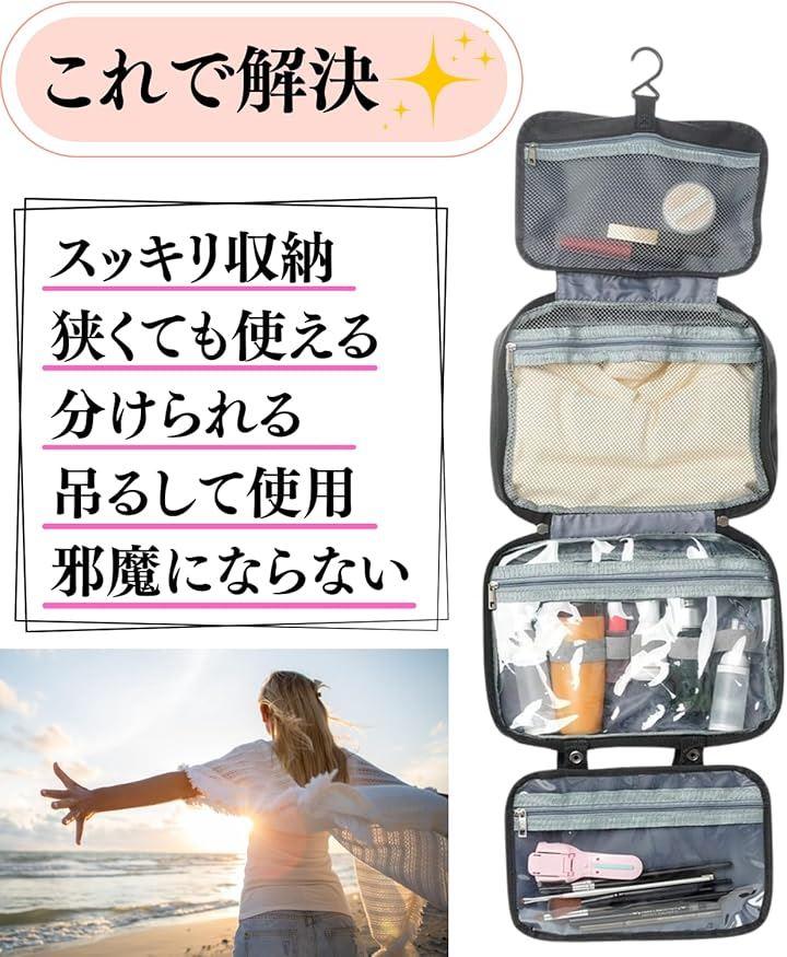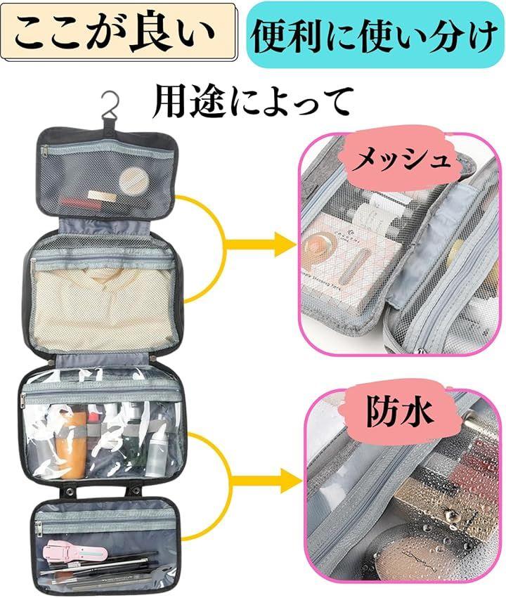 旅先で整理整頓を実現する便利グッズ、トラベルポーチが登場です。この多機能なメイクボックスは、吊り下げ収納・コスメ収納に最適な設計で、洗面所やクローゼットに吊り下げができるため、すっきりとした空間をキープします。