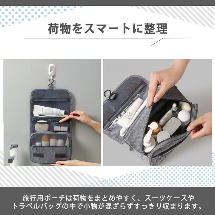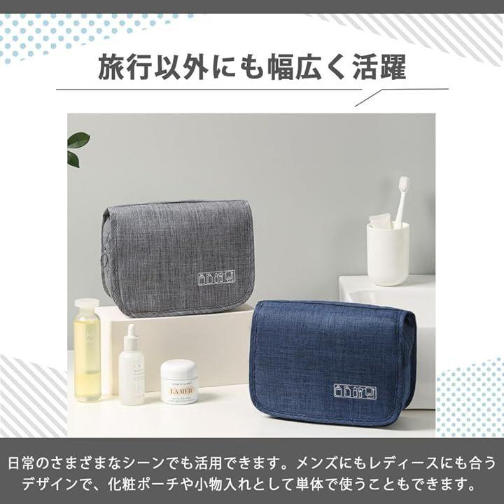 「商品詳細」 ・カラー:ブルー、グレー、ブラック、ライトブルー ・用途:旅行用ポーチ、化粧ポーチ、小物入れ、トラベルバッグ収納 ・特徴:軽量設計、仕切り付き、持ち運びやすいコンパクトサイズ ・サイズ感:スーツケースやボストンバッグに収まりやすい設計 ・素材:繰り返し使用に適したしっかりとした生地