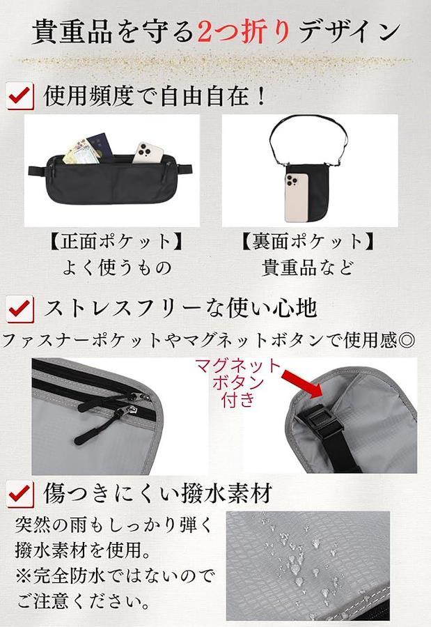 「サイズ」 縦16cmx 横38cm(開いた状態)x 厚さ1cm、重さ 320g 「材質」 撥水ポリエステル、RFID素材 「カラー」ブラック、ダークグレー、ライトグレー、レッド、イエロー、ネイビー 「使い方」ウエストポーチ、ボディバッグ、ショルダーポーチ、首掛け