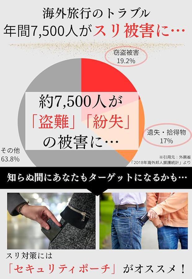 7つのポケットで収納力に優れ、スマホやパスポート、チケット類を効率よく整理できます。