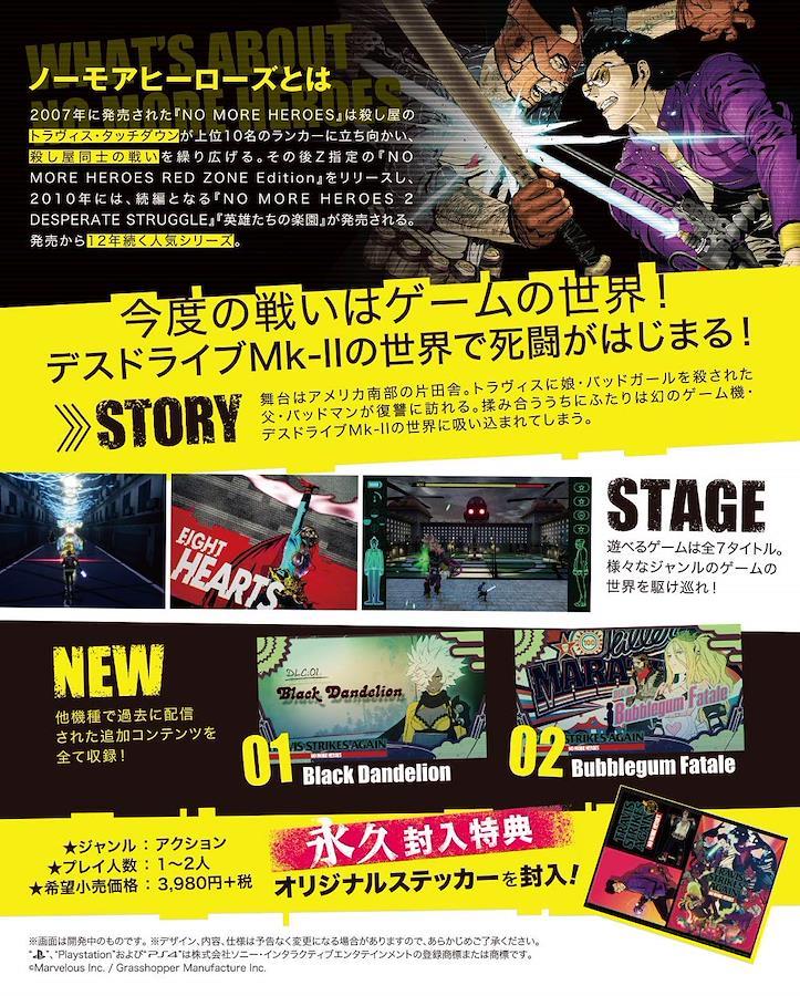 「Travis Strikes Again」が完全版になってPlayStation4に登場追加コンテンツ2種を収録「新規描き下ろしのパッケージ」に「オリジナルステッカー」が封入