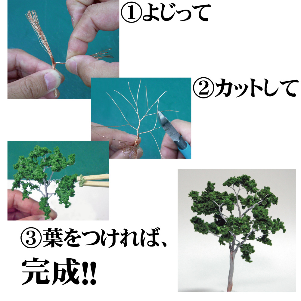 簡単に樹木が作れる、紙巻き針金を束ねた素材です。