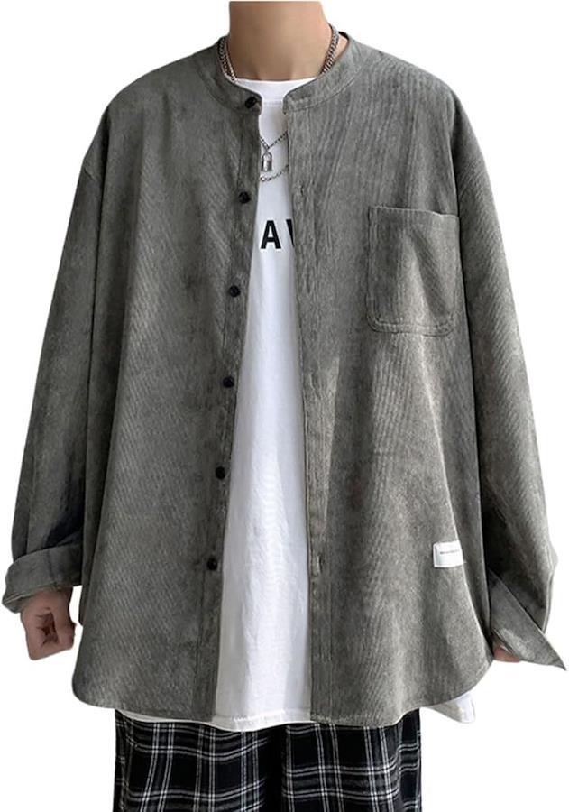 温かみのあるコーデュロイ素材と首元のバンドカラーで、季節感あふれるカジュアルコーデを演出してくれます。