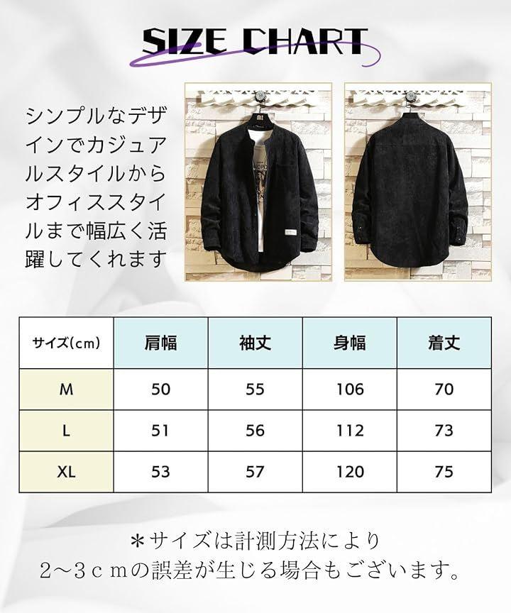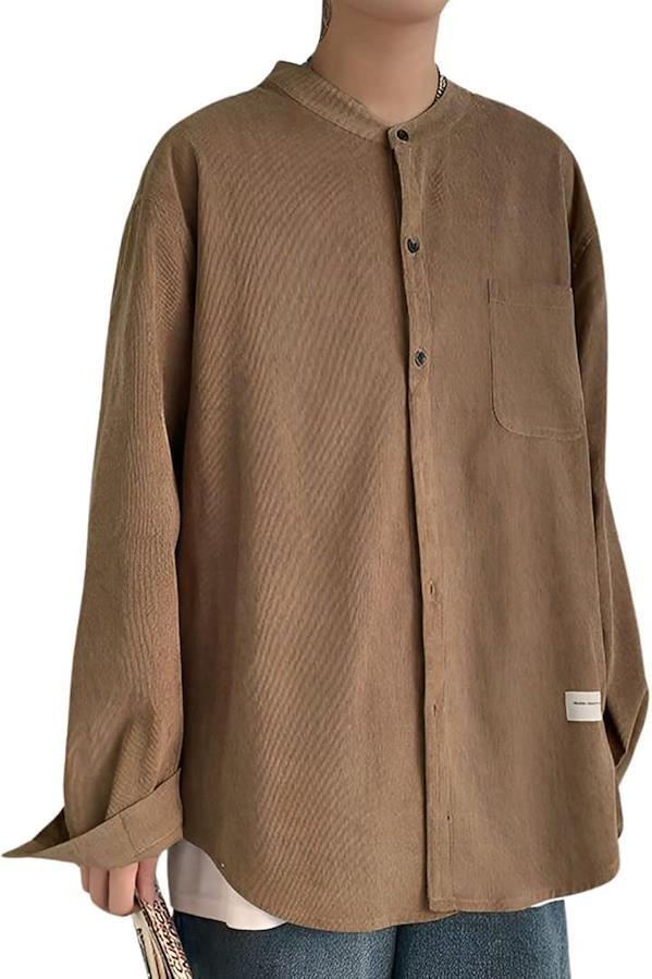 温かみのあるコーデュロイ素材と首元のバンドカラーで、季節感あふれるカジュアルコーデを演出してくれます。