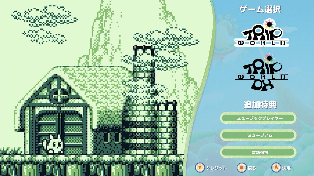 カラーになって復活!跳ねて、泳いで、飛んで。ふしぎな生き物ヤコプの冒険。1992年に発売されたゲームボーイ用のアクションゲーム「トリップワールド」が、当時の開発ディレクター植田祐一氏監修のもと、カラーになって復活!平和の象徴である「マイタの花」が奪われたため、主人公のヤコプは犯人を追って5つの世界からなる「トリップワールド」へ冒険の旅に出ます。ヤコプの特技は、いつでも3つの姿に変身できること。陸上を歩きキックで攻撃する「陸上ヤコプ」、魚のように泳いで泡爆弾で攻撃する「水中ヤコプ」、はばたいて空を飛ぶ「空中ヤコプ」。その他にも特殊アイテムを取れば、ぽんぽんと弾むボールになったり、敵を倒すしっぽが生えたりします。そびえる山、海中の遺跡、花が咲き乱れるお城などの世界には、それぞれボスが待ち構えています。