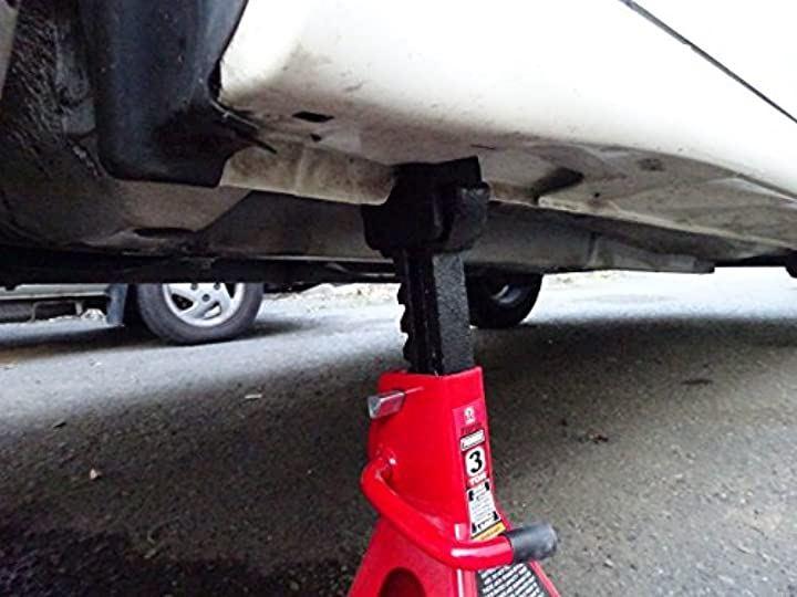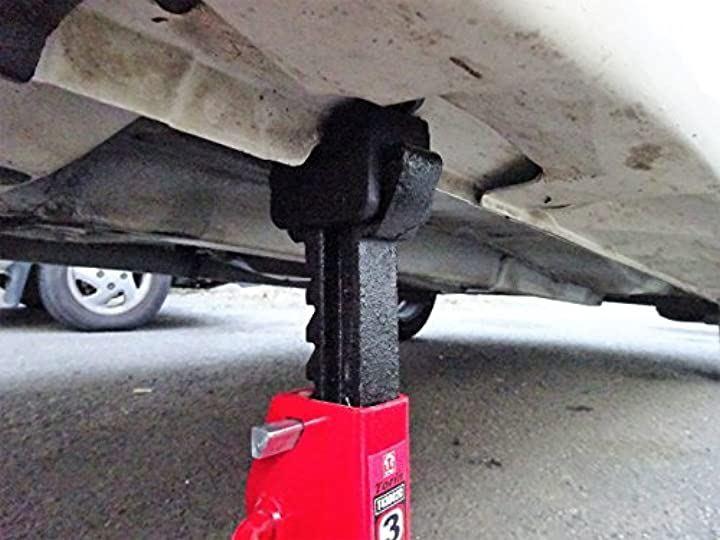 「寸法」 個数:2個 長さ:63mm 高さ:50mm 幅:44mm 溝の深さ:17mm 寸法は画像でも紹介しておりますとおり、 お手持ちにジャッキスタンドにフィットするようであれば汎用品としてもお使い頂けます。