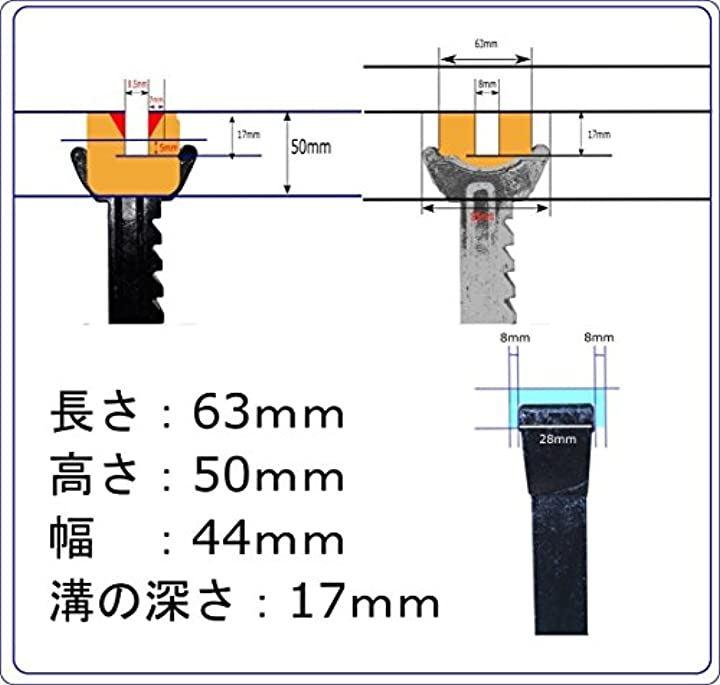 長さ:63mm 高さ:50mm 幅:44mm 溝の深さ:17mm 寸法は画像でも紹介しておりますのでお手持ちにジャッキスタンドにフィットするようであれば汎用品としてもお使い頂けます。