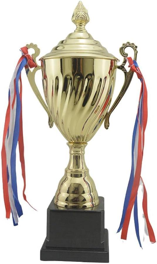このトロフィーの具体的な役割はまず、スポーツ大会や各種イベントでの表彰式では、優勝者や顕著な成績を収めたチームに対してこの華やかな優勝カップが贈られます。