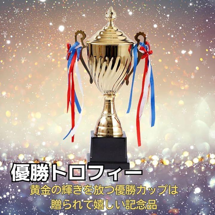 このゴールドの光沢が目を引くトロフィーは、あらゆるイベントや競技、スポーツ大会での優勝賞品として理想的な選択肢です。