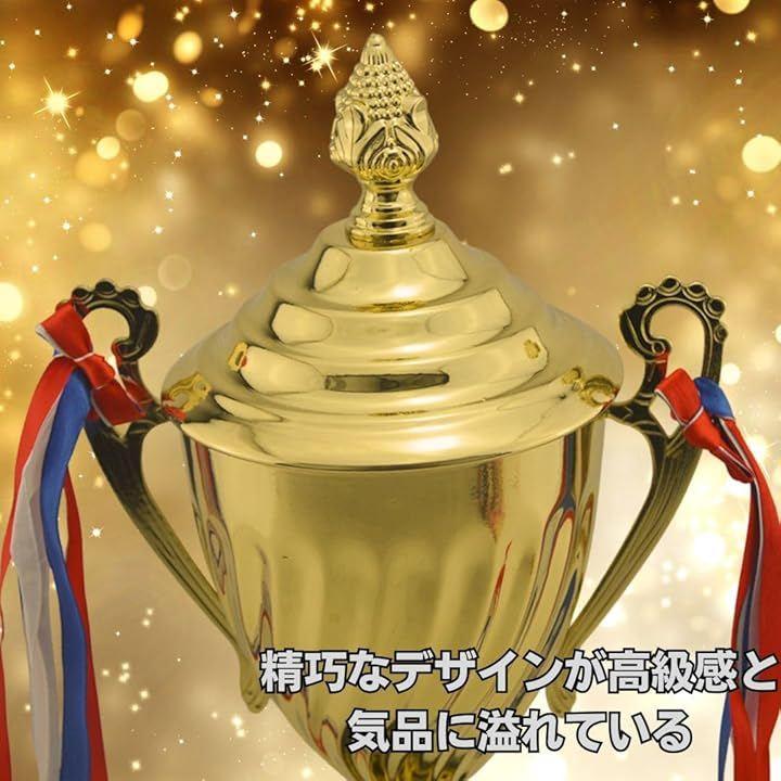 適度な大きさがその存在感を一層際立たせ、トロフィーをさらに引き立てるリボンがその美しさに華を添えます。