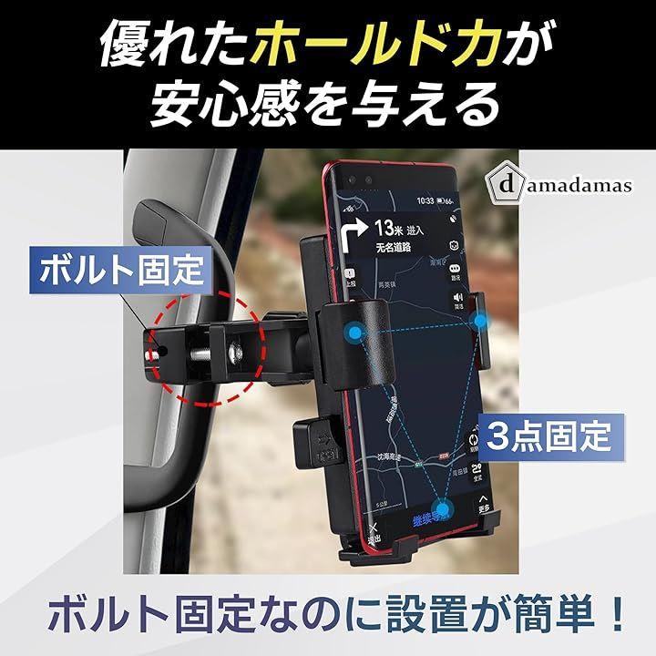 「特徴」 アストグリップ スマホホルダー(トラック用スマホホルダー)の特徴は、取り付けが簡単で、ボルトを使ってアシストグリップにしっかり固定することができます。
