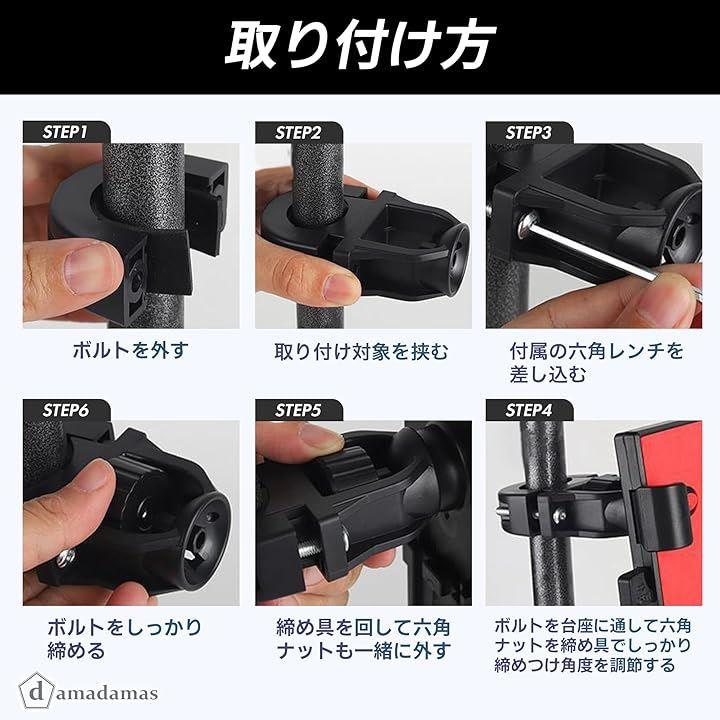ボルトや六角ナットの締め付けが不十分な場合、ホルダーがズレたり、スマートフォンが落下する可能性がありますので、くれぐれもご注意ください。