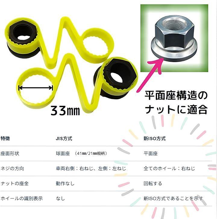 簡単装着: 33mmサイズのホイールナットに対応し、取り付けは数秒で完了します