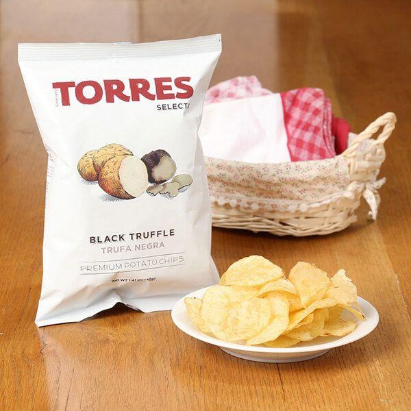トーレスTORRES黒トリュフポテトチップスはスペイン産乾燥黒トリュフを使った味も香りも贅沢なチップスです。