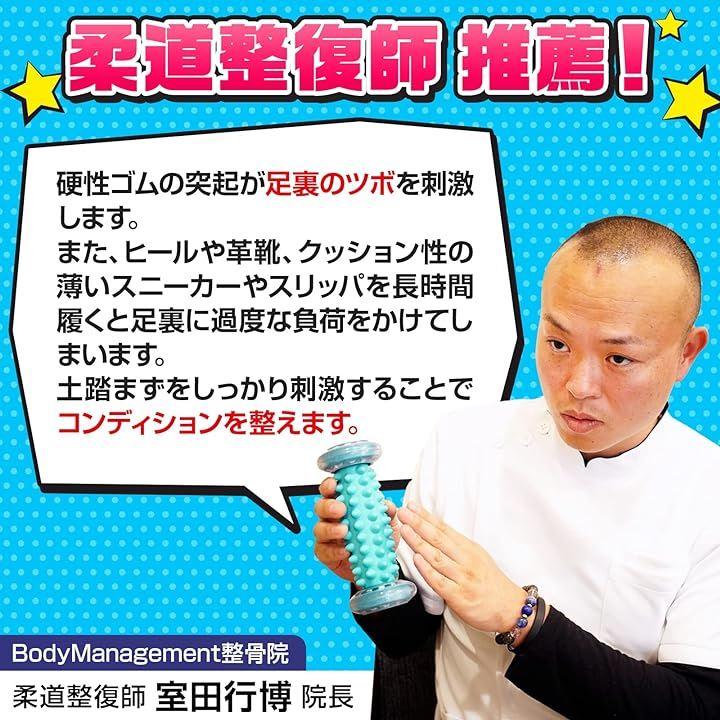 「柔道整復師推薦」 ちょうど良い硬さの76個の突起が 足つぼ をグイグイ刺激。指で指圧されているかのような感覚の 足裏マッサージ ローラー です。