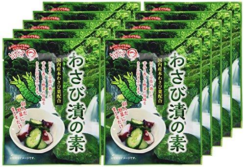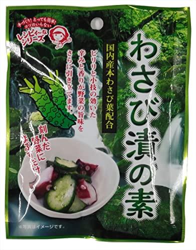 国内産本わさび葉配合。 ピリリと小技の効いた辛みと香りが野菜のうま味をさらに引き立てます。 刻んだ野菜にまぶして漬けるだけで簡単にできます。 漬け時間が6時間~12時間でツーんとくる十分な辛味に、12時間~24時間漬けると適度な辛味に仕上がります。 おすすめレシピは「たこときゅうりのわさび漬」です。