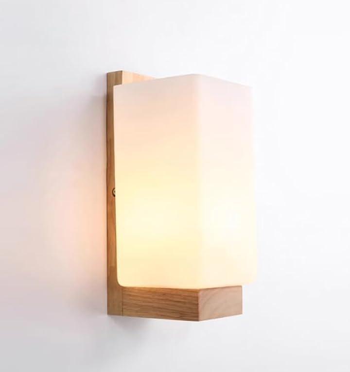 TT Japanese-style Wooden Art Bedside Wall Light, Simple Modern Nordic Creative Design for Bedroom, Living Room, Hallway, Hotel, E26, Single Light, White Acrylic Lampshade