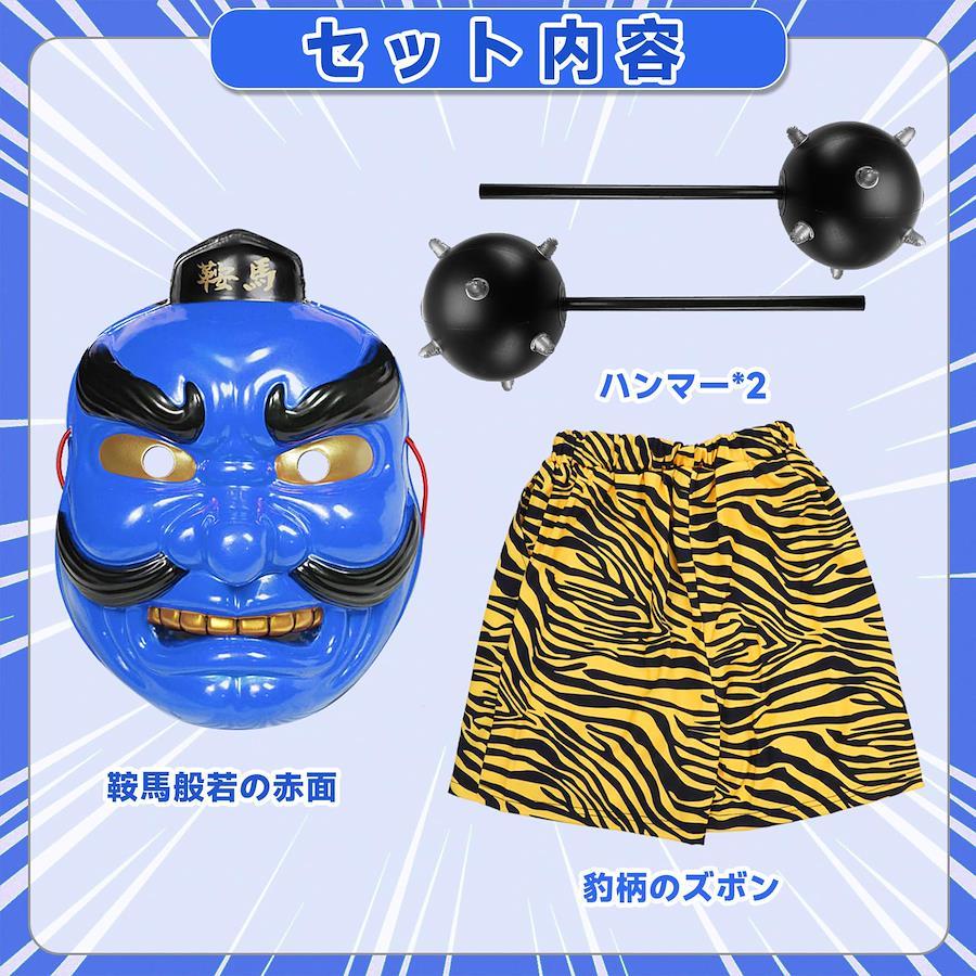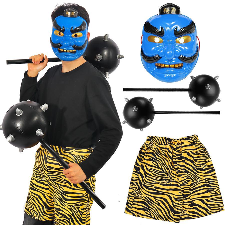 [TUAHOUS] Oni Cosplay Costume for Setsubun, Oni Pants, 4-Piece Set, Meteorite Hammer Red Oni Costume, Full Body Adult Costume, Mask, Cosplay Accessories, Setsubun