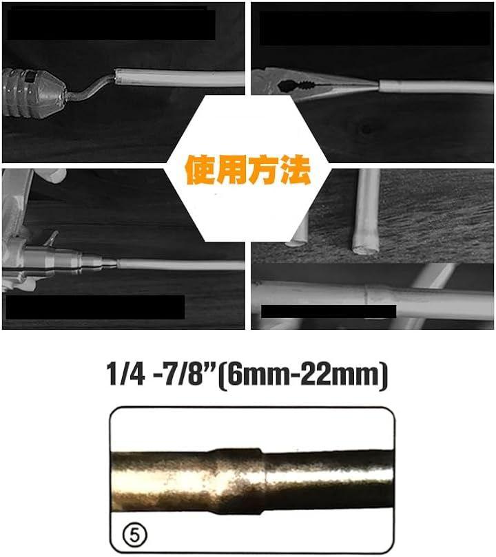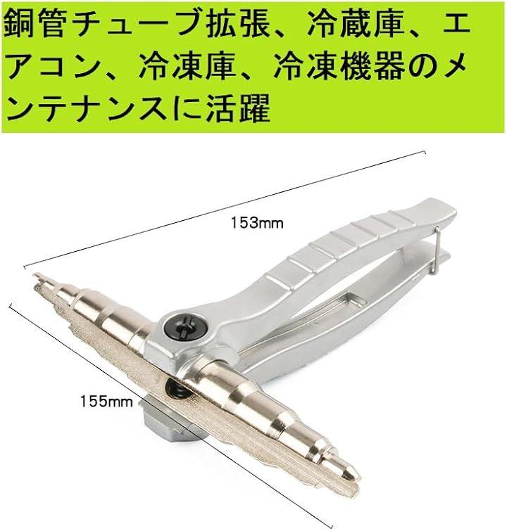 「広範囲な用途に対応」このチューブエキスパンダーは、銅パイプだけでなく、塩ビ管、アルミパイプ、ゴムホースなど幅広い材質の管材の拡張作業に適しており、冷蔵庫やエアコン、冷凍庫といった家庭用冷却機器から、業務用冷凍設備のメンテナンスまで、多種多様な環境での使用が可能です。