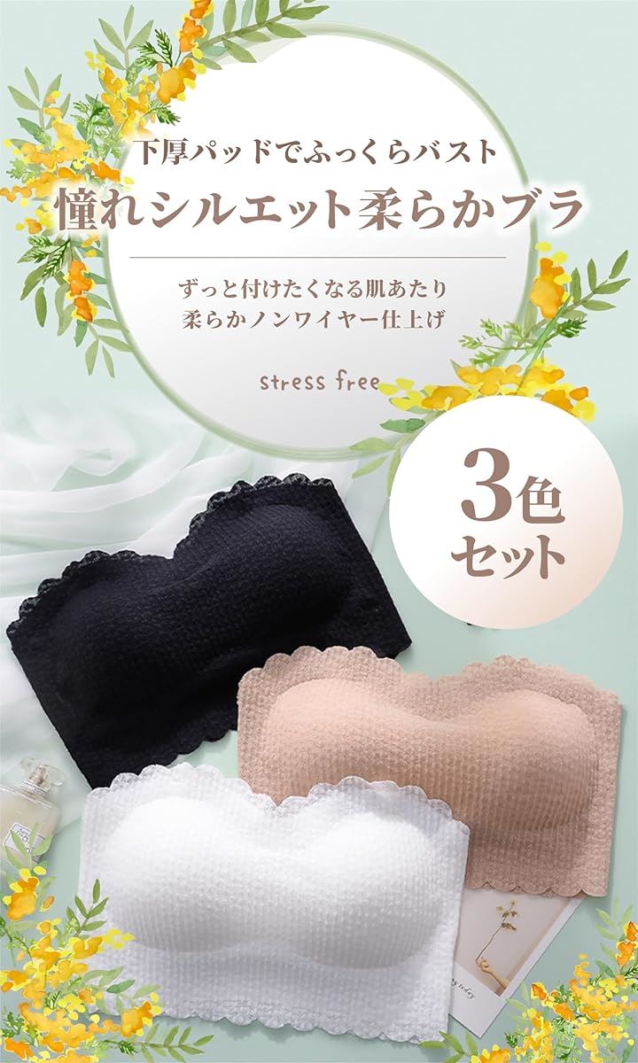 カップ付き ノンワイヤー ホックなしタイプの チューブトップ ブラ です。