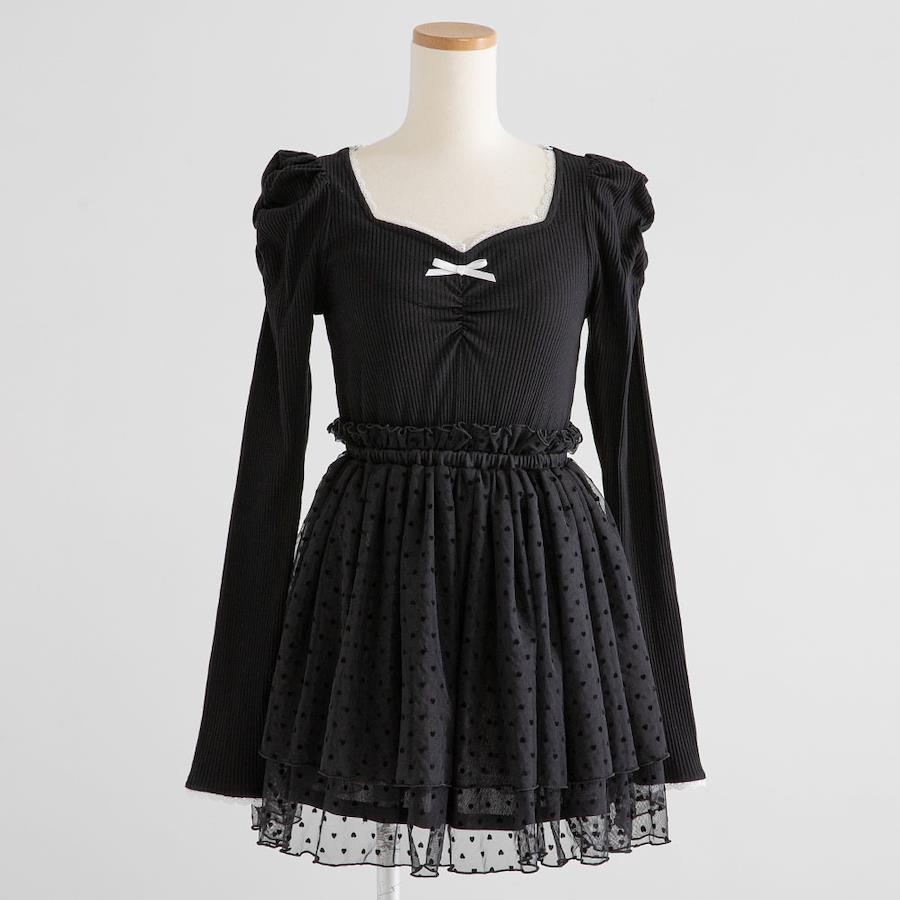 上半身は襟ぐりや袖口のレース、リボンが可愛らしく、パワショルでプリンセスみのあるガーリーなデザイン◎