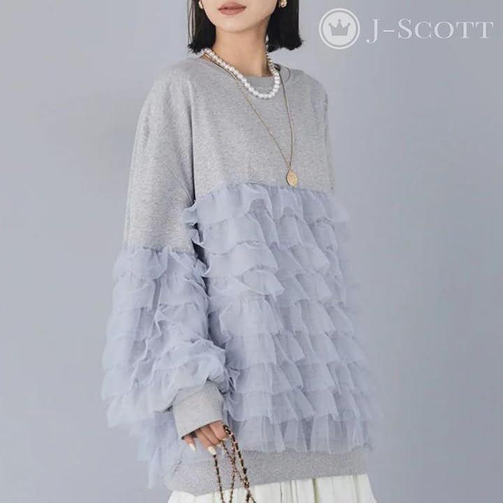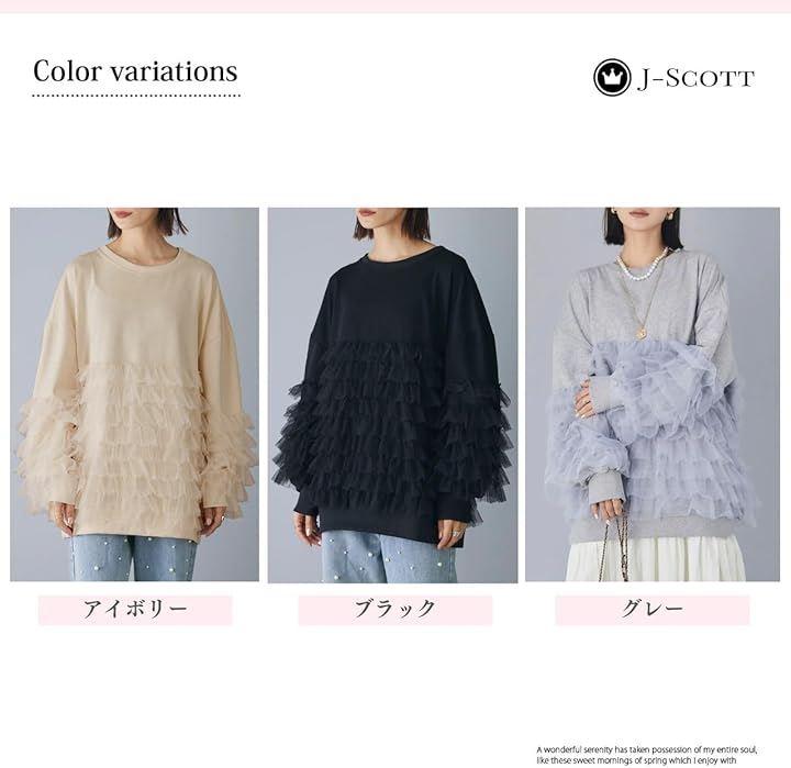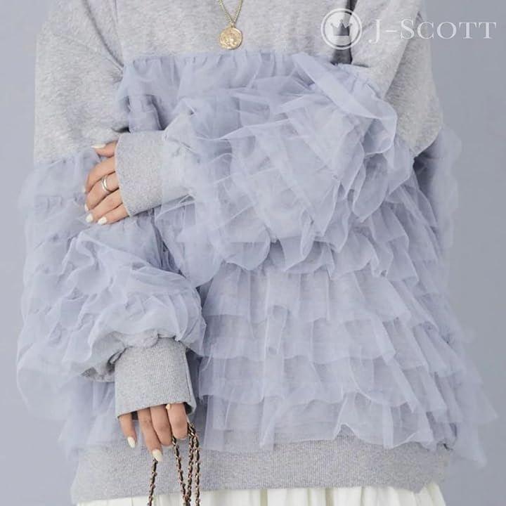 「ロマンティックなディテールにときめく」 ゆったりとしたシルエットのプルオーバーに、胸下からたっぷりと何段にも重ねたチュールのフリルがロマンティックな1枚。
