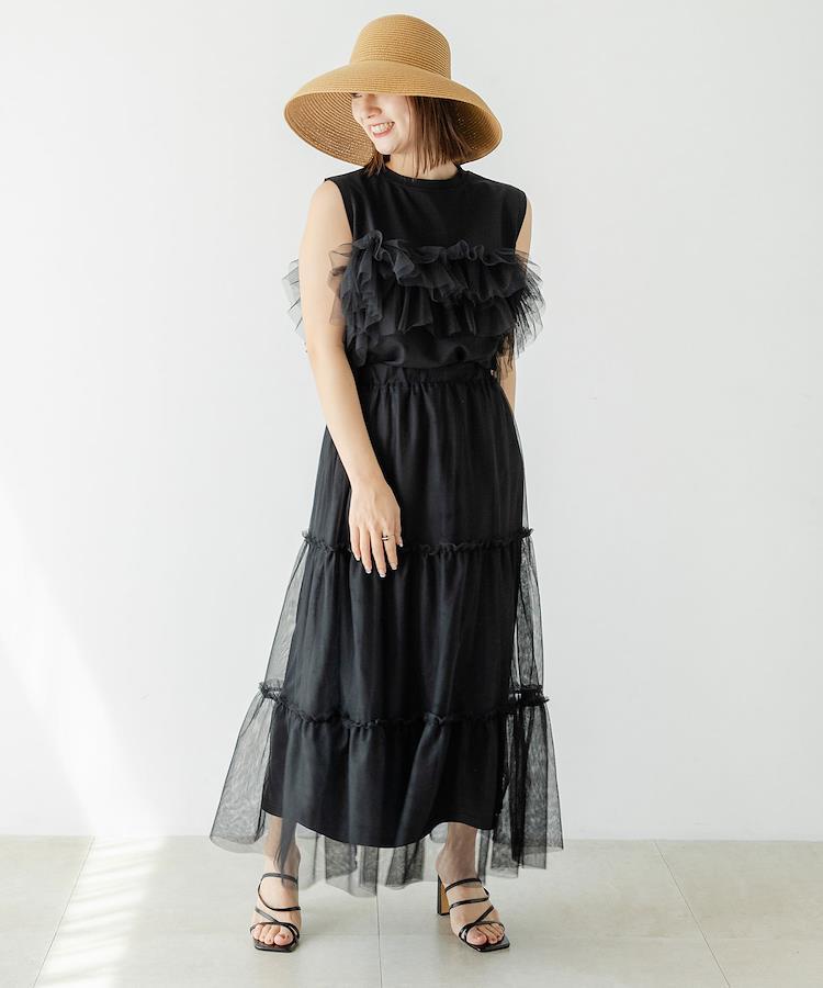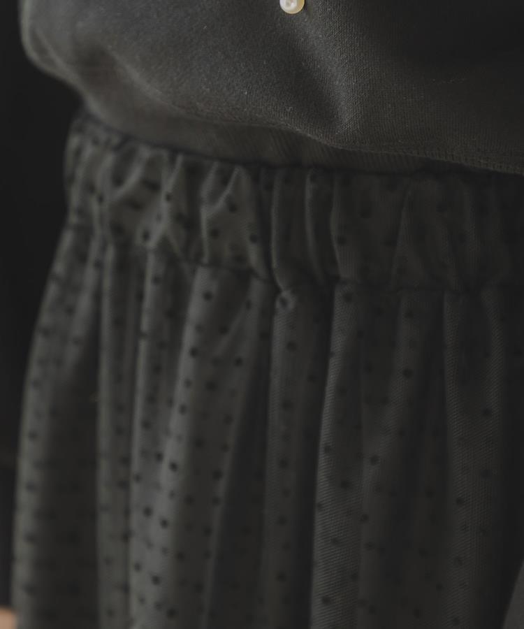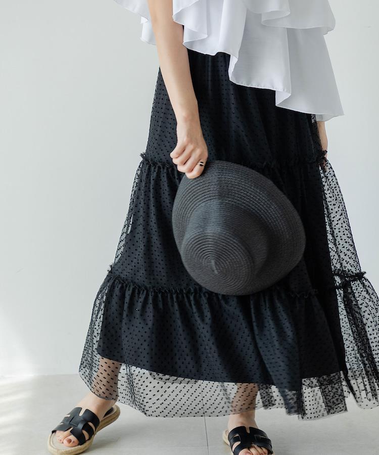 着こなしの幅が広がる裏地が取り外せるチュールスカートチュールスカートとペチコートスカートが2枚セットになったアイテム。裏地が取り外せるので、お手持ちのパンツとレイヤードして透け感を楽しむコーディネートも◎用尺をたっぷりと取ったティアードデザインは大人女子にぴったり。切替部分をフリルにし女子ポイントもプラスしました。ウエストゴム仕様でイージーな履き心地。どんなアイテムにも合うアイボリー、ブラックのモノトーンカラーに加え、SS気分の上がるドット柄もおすすめです。**********************透け感:チュールあり、ペチコートなし裏地:あり(ペチコート)伸縮性:なし光沢感:なし生地の厚さ:表地薄手、裏地普通**********************《生産国》中国
