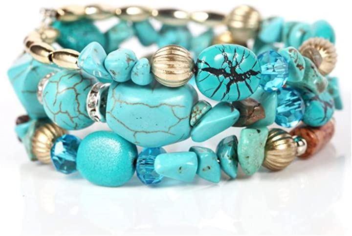 ・異素材を組み合わせたブレスレットは3連デザインだから手首のドレスアップにしっかりとアピール。鮮やかで、きれいなターコイズブルーで気分も上がります。