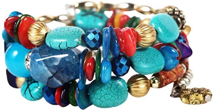 ターコイズカラーがきれいで、目を惹く、異素材パーツのデザインが特徴のブレスレットは手首まわりをおしゃれにしてくれるあると重宝するアイテムです。