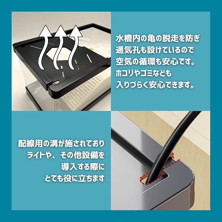 蓋付きなので、水槽内の亀の脱走を防ぎ、ほこりやゴミの侵入もブロックします。