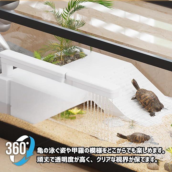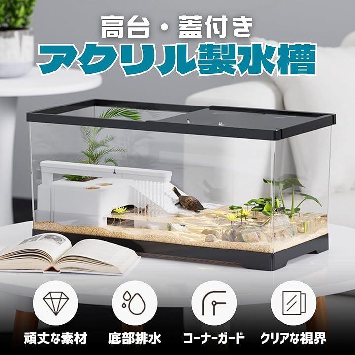 亀の快適な生活をサポートする、高台付きで蓋付きのアクリル製水槽です。