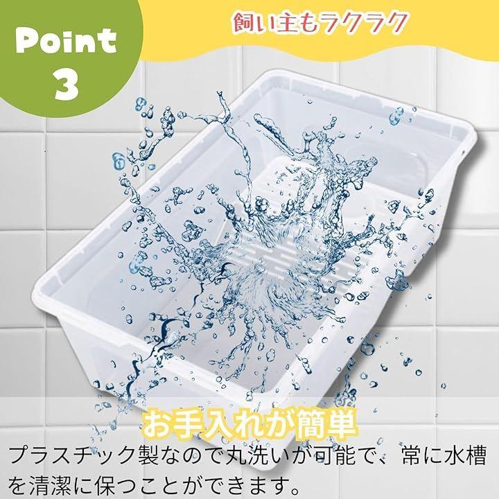 「お手入れが簡単」 プラスチック製なので丸洗いが可能で、常に水槽を清潔に保つことができます。