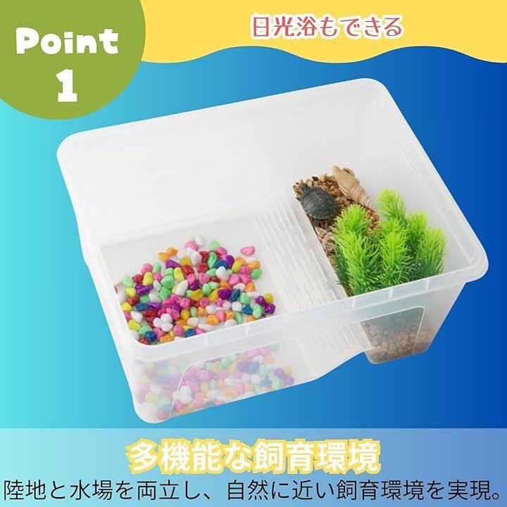 「多機能な飼育環境」 水場と陸地を分けられる設計で、カメが自然に近い環境で過ごせます。