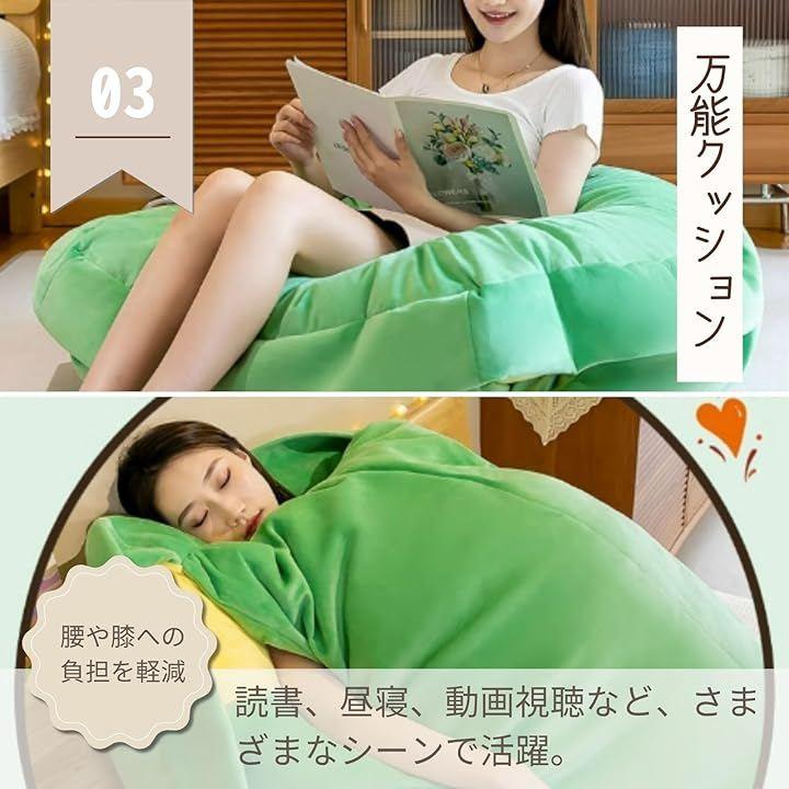「体圧を分散し、腰や膝への負担を軽減」ソファや床で寄りかかる際の背もたれや、お昼寝時の枕として使用することで、体の特定部分にかかる体圧を分散します。