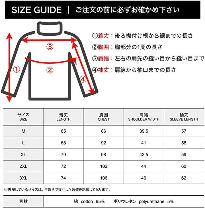 ・[着丈]:M:65cm,L:68cm,XL:70cm,2XL:72cm,3XL:74cm