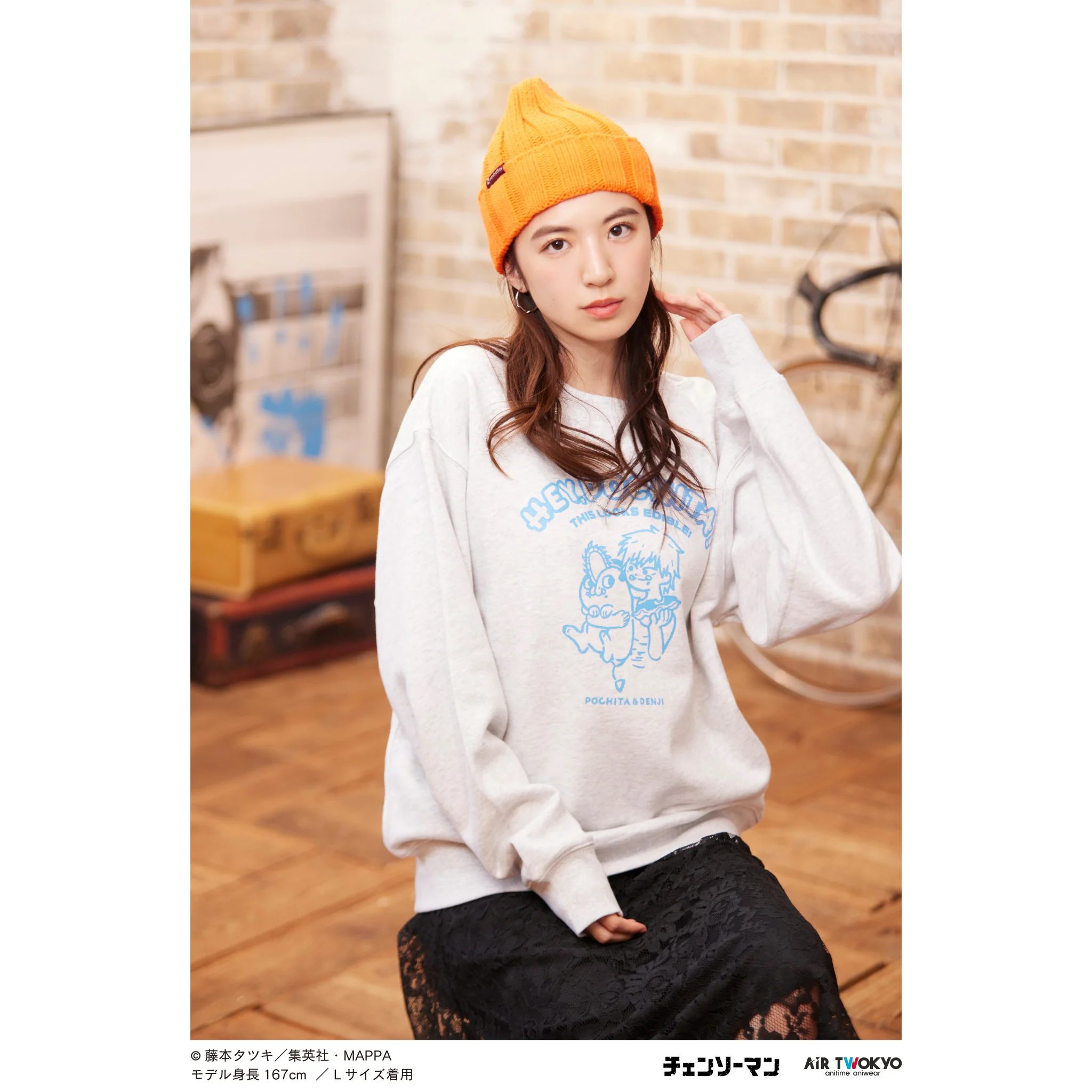 第7話にてデンジとポチタがご飯を一緒に食べるシーンをデザイン胸の英文はデンジの台詞をデザインしており、背中はデンジを待つポチタをイラスト化生地は12.7オンスと厚めでざっくりながらもきれいなシルエットと堅牢なステッチワークが特長