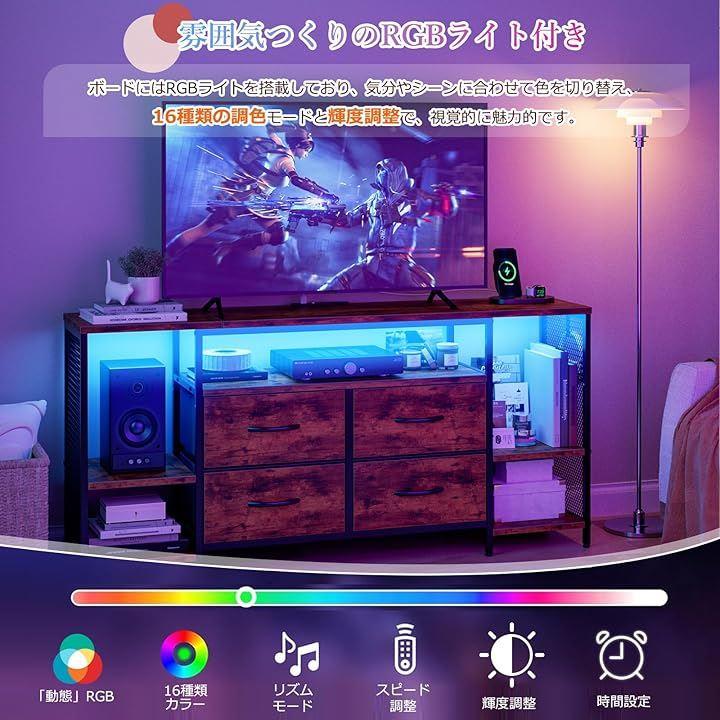 「雰囲気つくりのRGBライト付き」チェストの棚ボードにはLEDライトが付いており、パーティーやゲームがより楽しくなる雰囲気を一瞬で作ることが出来ます。