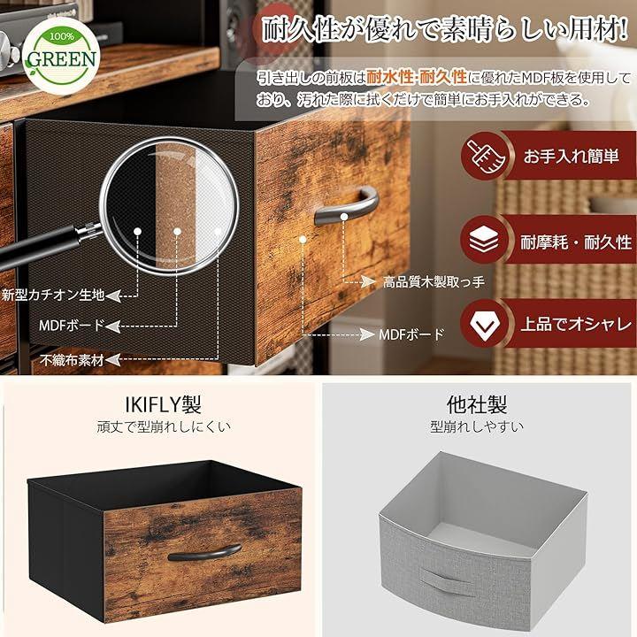 引き出しはスムーズに開閉できるレール構造で、重い物を入れてもすべりが良いのが特徴。