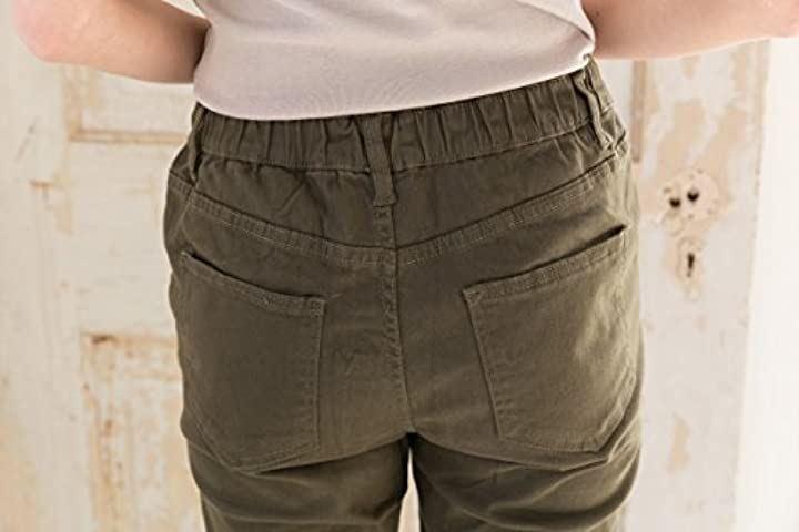 *ツイルのしっかりした生地感を残しながら、家でも外でもリラックスできるように腰回りはゴムを採用*