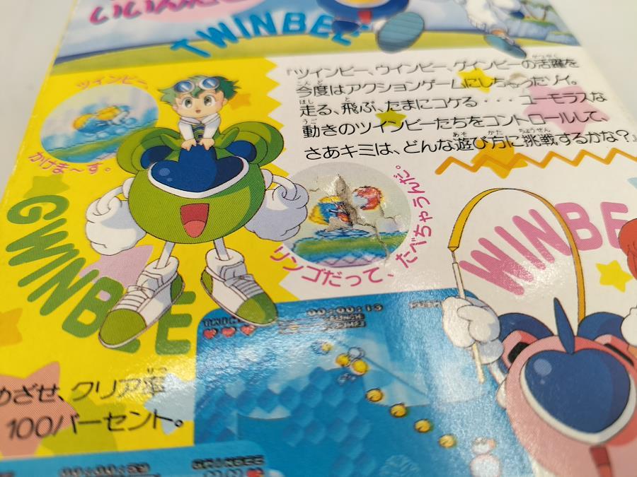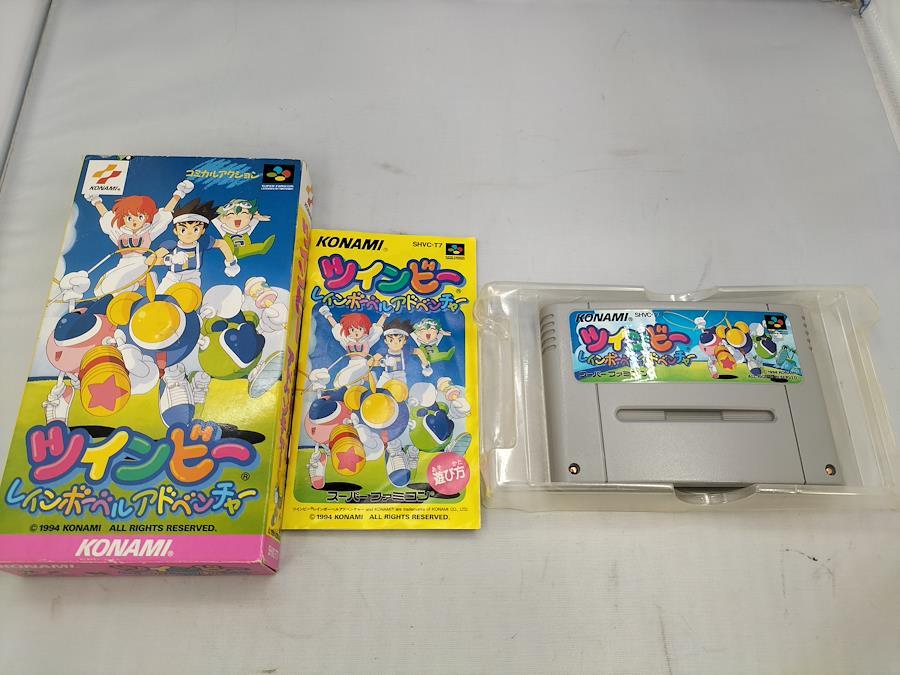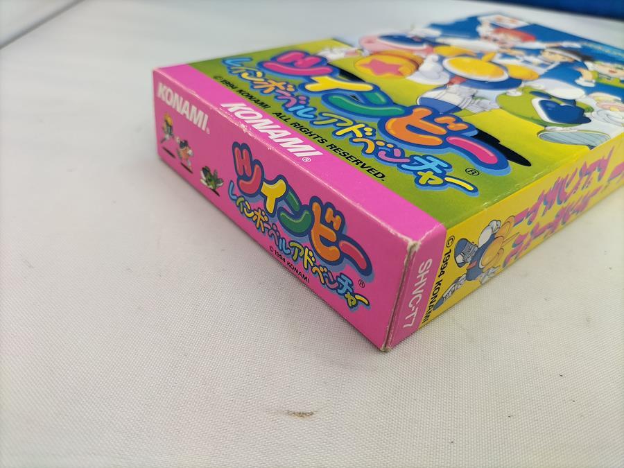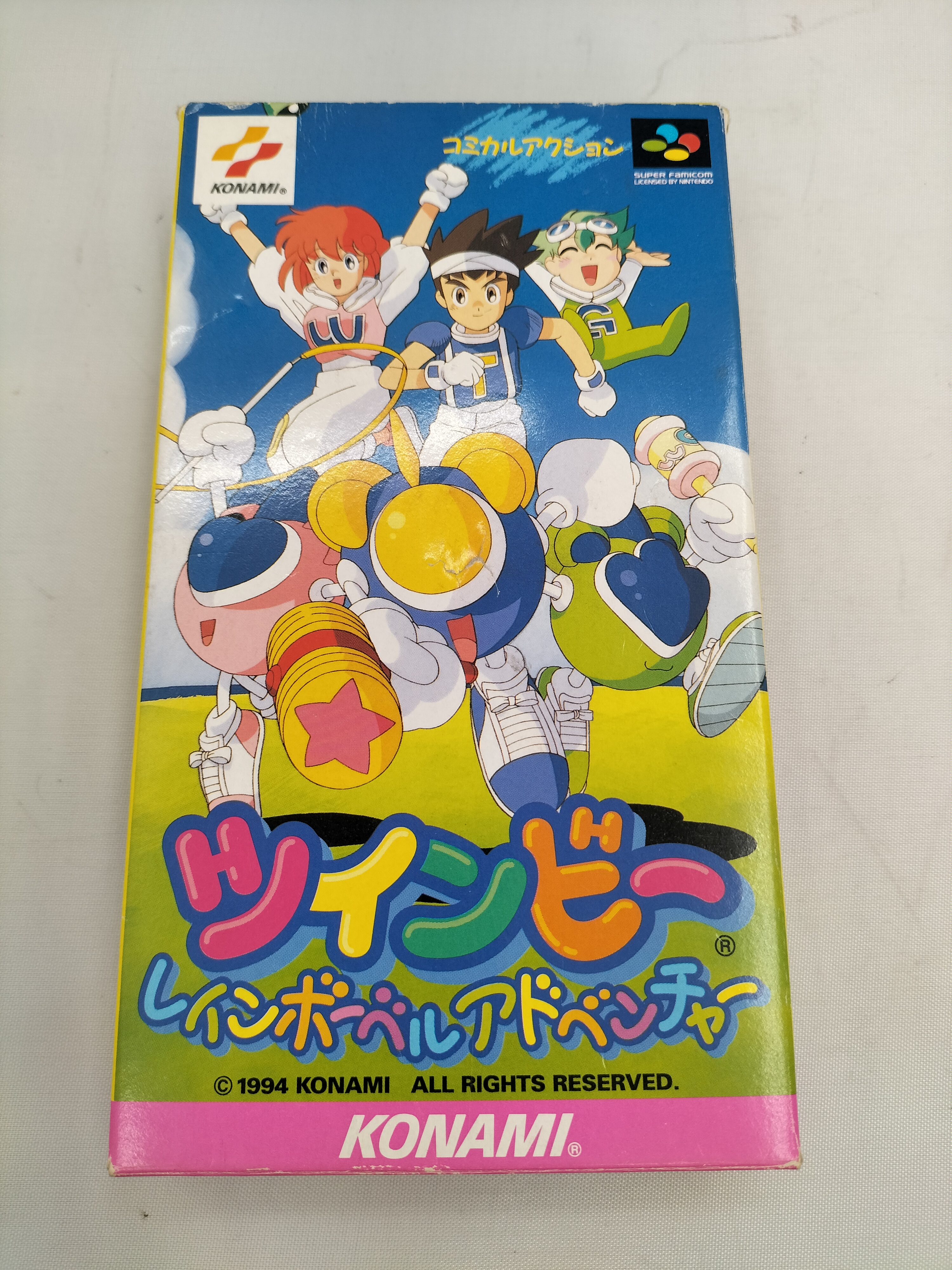コード■特徴・備考スーパーファミコンソフト『ツインビー レインボーベルアドベンチャー』※箱傷み、内側に落書きあり
