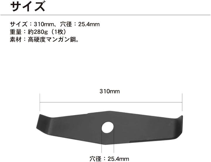 「商品スペック」サイズ:310mm、穴径:25.4mm、重量:約280g(1枚)、素材:高硬度マンガン鋼。