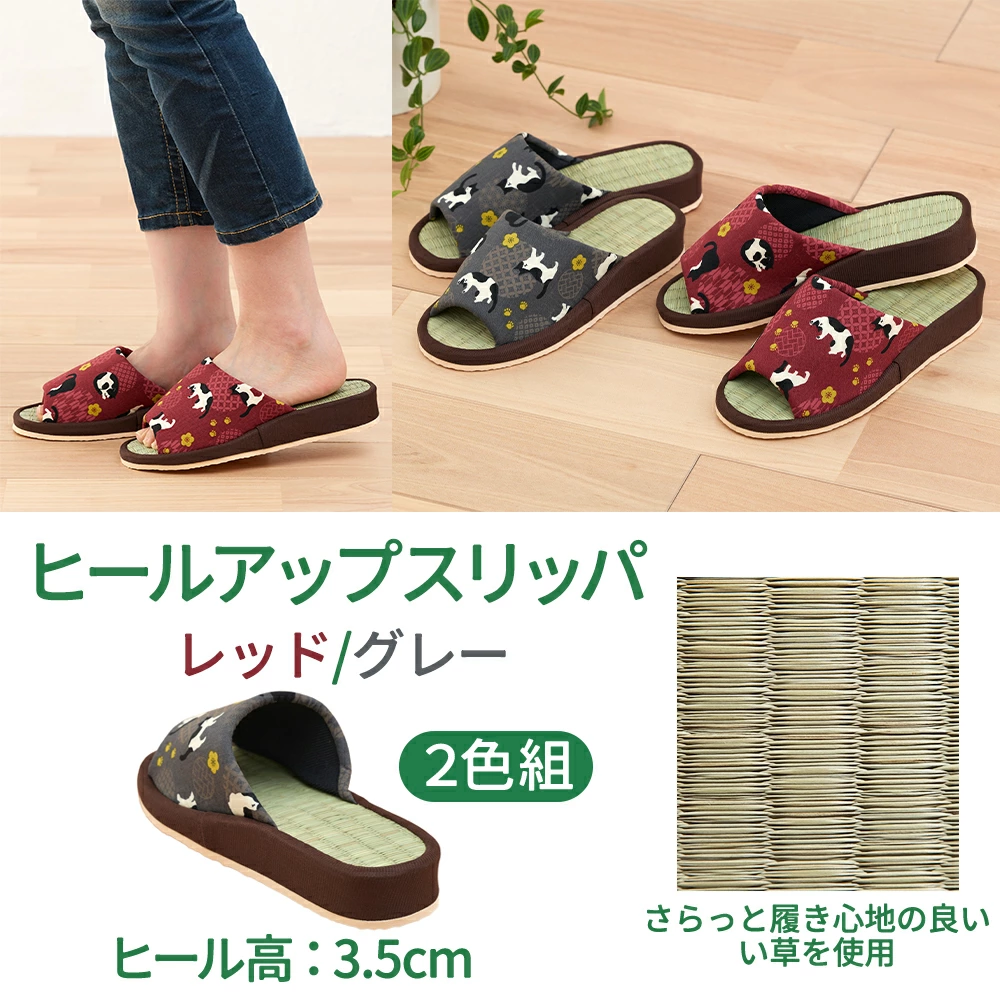 い草ヒールアップスリッパ 和にゃんこ 2色組 XM-988(4968812429890)