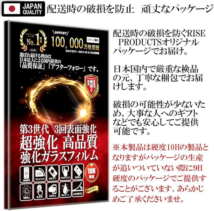 *内容品:クリアガラスフィルムx2、ウェットクロスx2、ドライクロスx2、埃吸着シートx2、クリーニングクロスx1、パッケージ裏面貼付説明書付属。