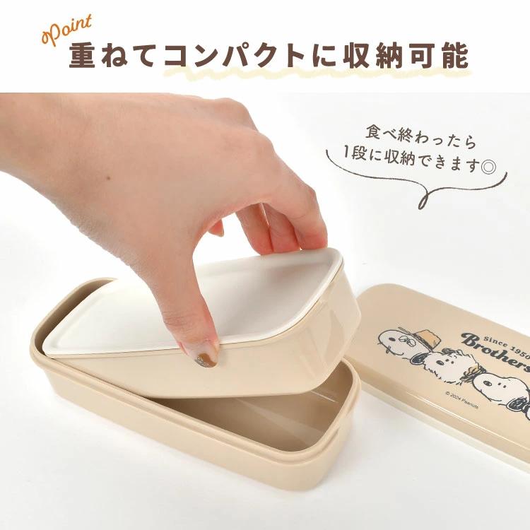Two-Tier Snoopy Lunch Box, 640ml Capacity, Microwaveable, Made in Japan, Compact, Slim, Small Capacity, Includes Chopsticks, Cute, Stylish, Two-Tier, with Elastic Band, Suitable for Adults, Children, Girls, Elementary School Students, High School Students, and Boys [kj-207613]