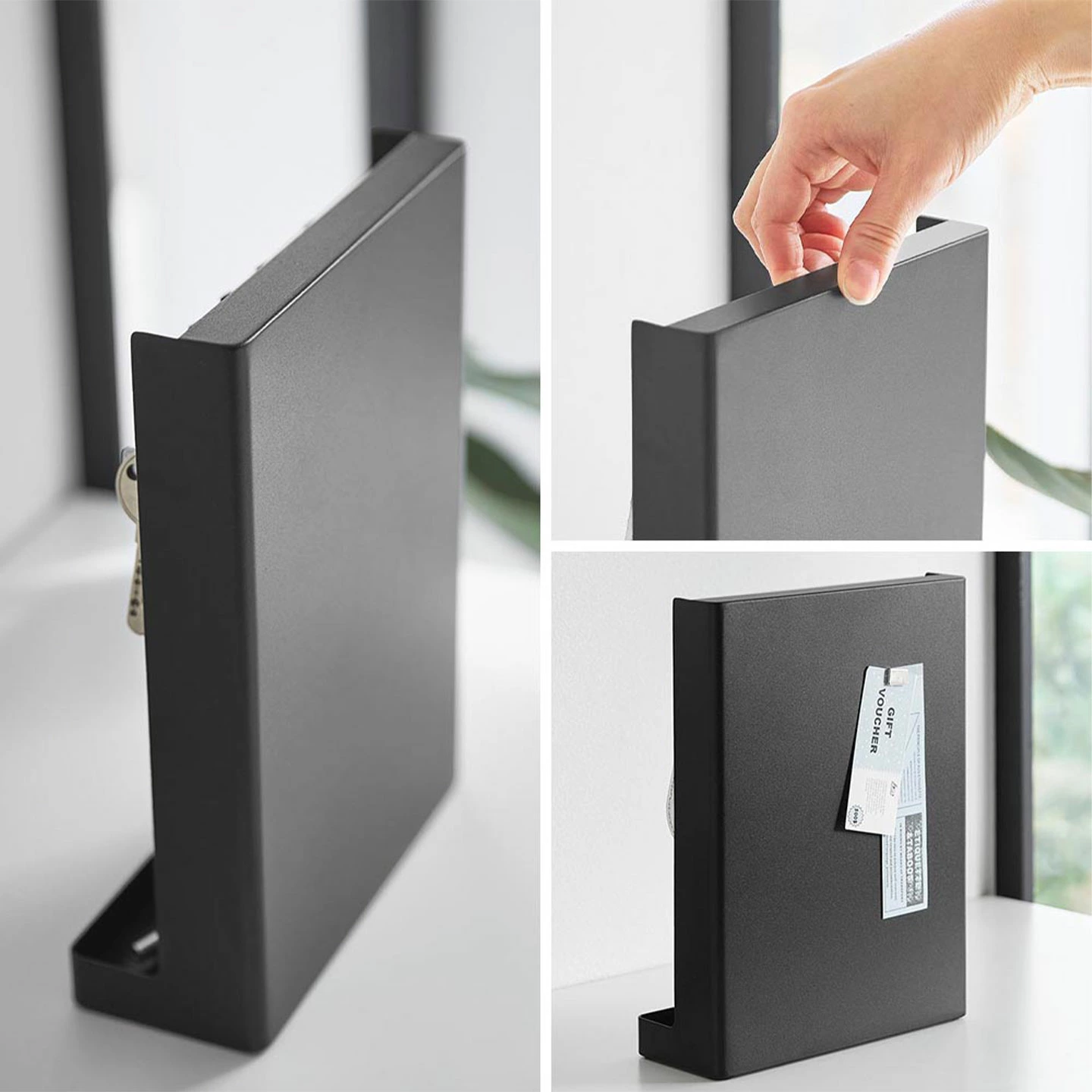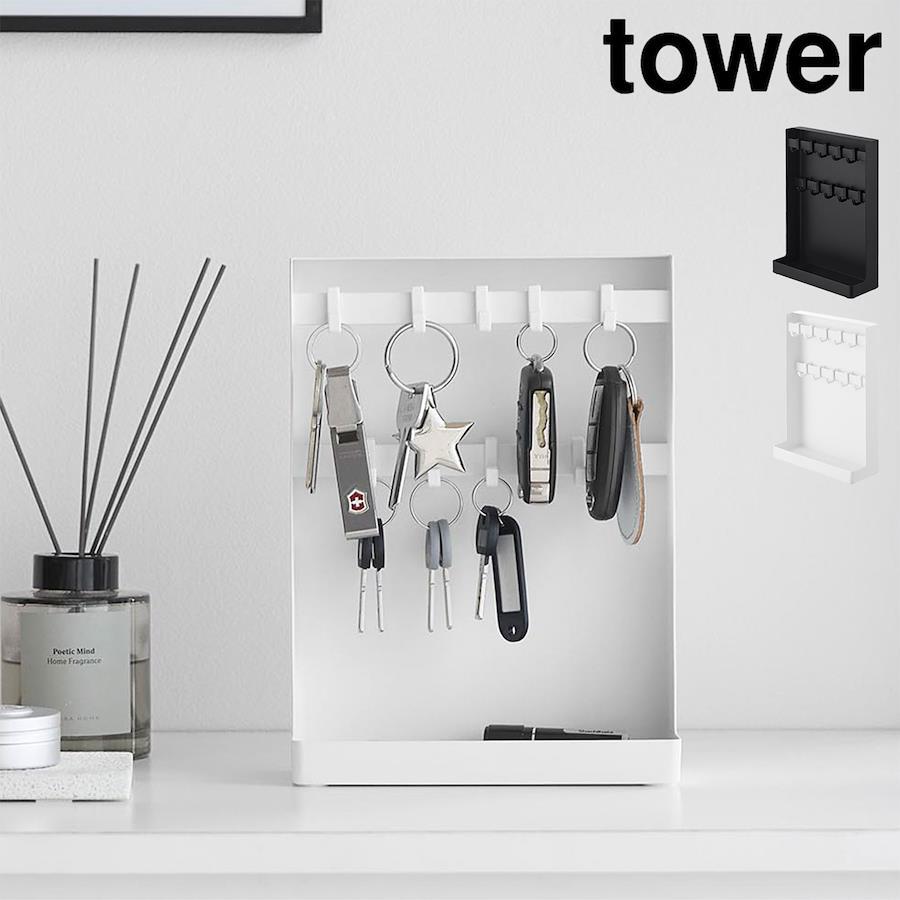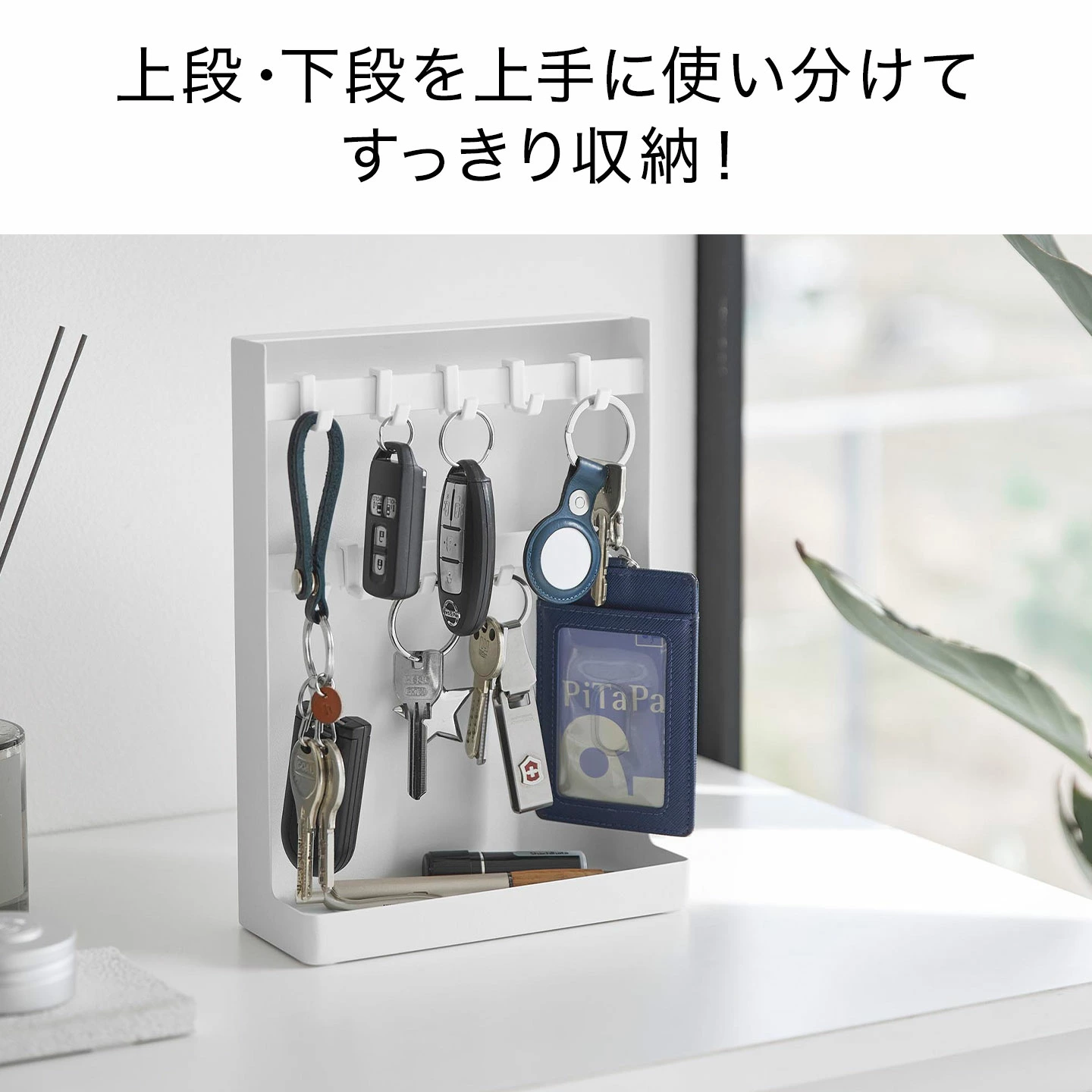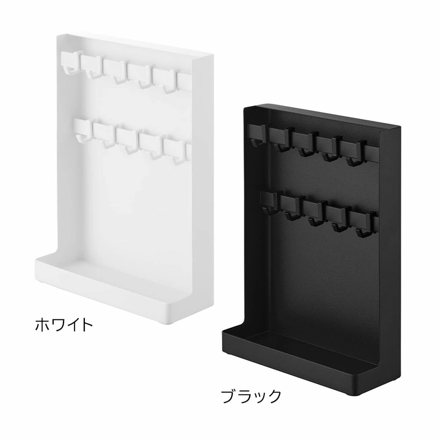 Two-Tier Yamazaki Tower Key Hook Stand (10340/10341) in White and Black. Official Key Storage, Entryway Storage, Key Holder, Key Hook, Magnetic, Steel, Hidden Storage, Small Item Organizer, Tray, Seal, Pen [ymj-10340]
