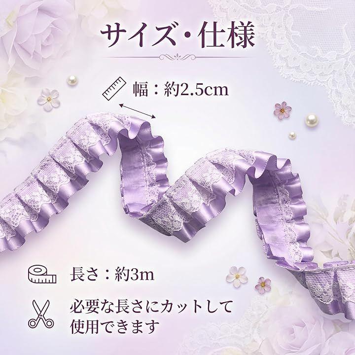 Two-tiered ruffled satin lace ribbon, 2.5cm x 3m, for crafts, decorations, gift wrapping, costumes, and accessories.