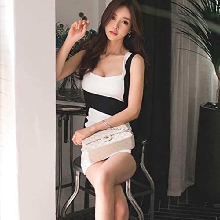 ホワイトとブラックでバイカラーのラインが、クールでスタイリッシュなタイトミニドレスホワイトとブラックでバイカラーのラインが、クールでスタイリッシュなタイトミニドレスです。