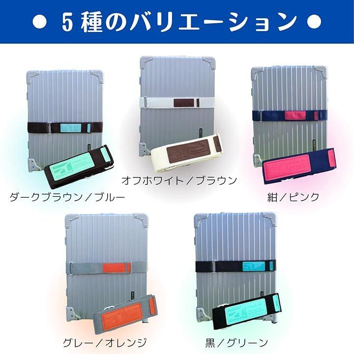 「サイズ・カラー」幅:5cm 長さ:最大180cm (調整可能・大まかな長さはコキカンで調整して、細かな調整は面ファスナーで可能) カラー:「ダークブラウン/ブルー」「オフホワイト/ブラウン」「紺/ピンク」「黒/グリーン」「グレー/オレンジ」